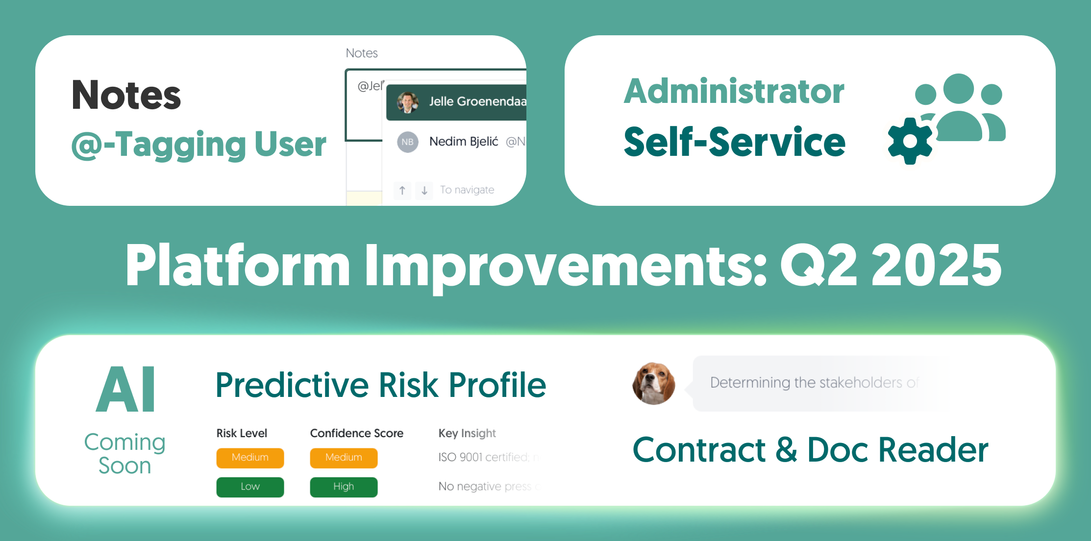Notes @-tagging: You can now tag your colleagues in notes by simply writing “@” and then selecting their name. Also: no need to lift your hands off the keyboard; you can also select the user with your arrow keys.